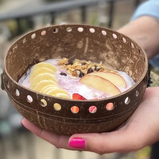 2 Tone Punched Coconut Bowl Set -(1 Bowl & wooden spoon) Handcrafted Eco-Friendly Serving Bowls