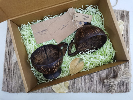 Eco-Friendly Coconut Shell Tea Cup Gift Set with Custom Name Engraving